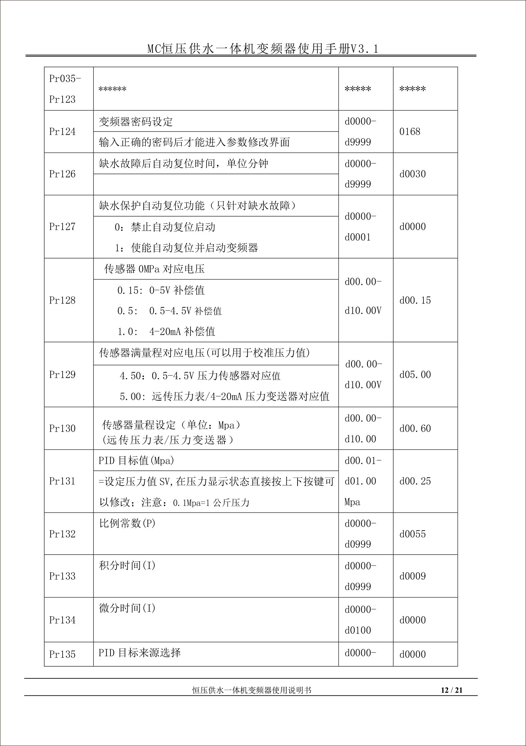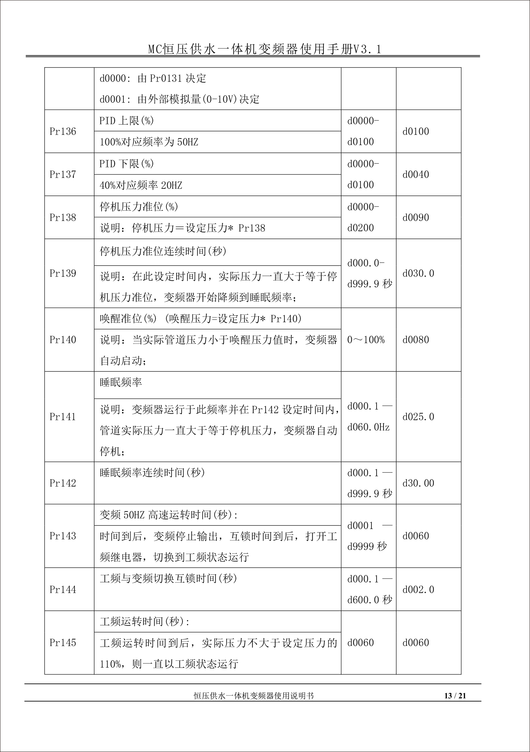 MC恒壓供水一體機變頻器使用手冊V31-181205